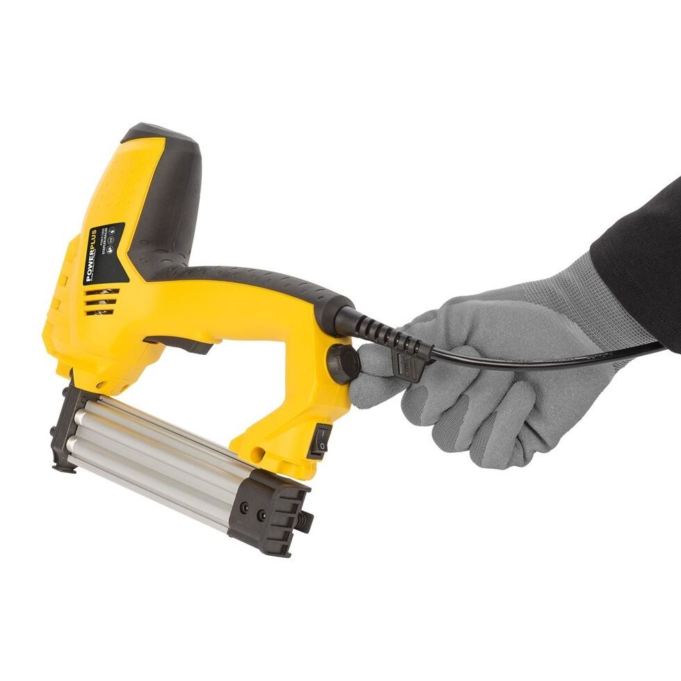 Aceata unealta este destinata fixarii lemnului, plaselor metalice, izolatiilor, foliilor, cartonului si placajului pe lemn sau alte materiale similare.