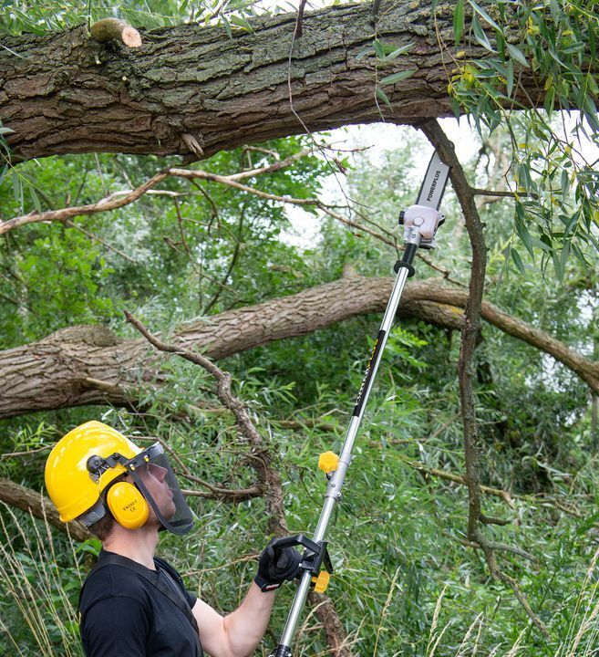 ▪ Ferăstrău cu lanț: mașina este proiectată pentru tăierea crengilor din arbori.