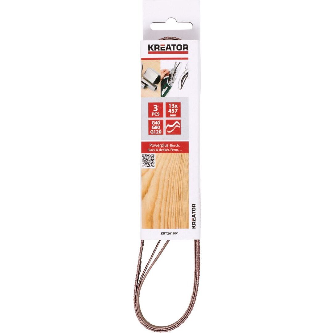 Set smirghel pentru slefuitor cu banda ingusta KRT261001, 457/13 mm, G40-80-120 granulatie